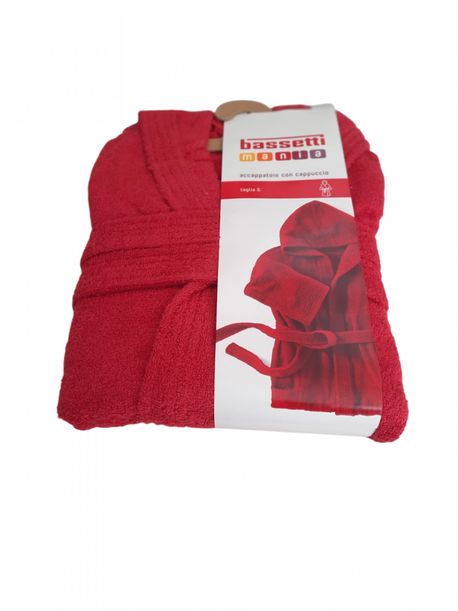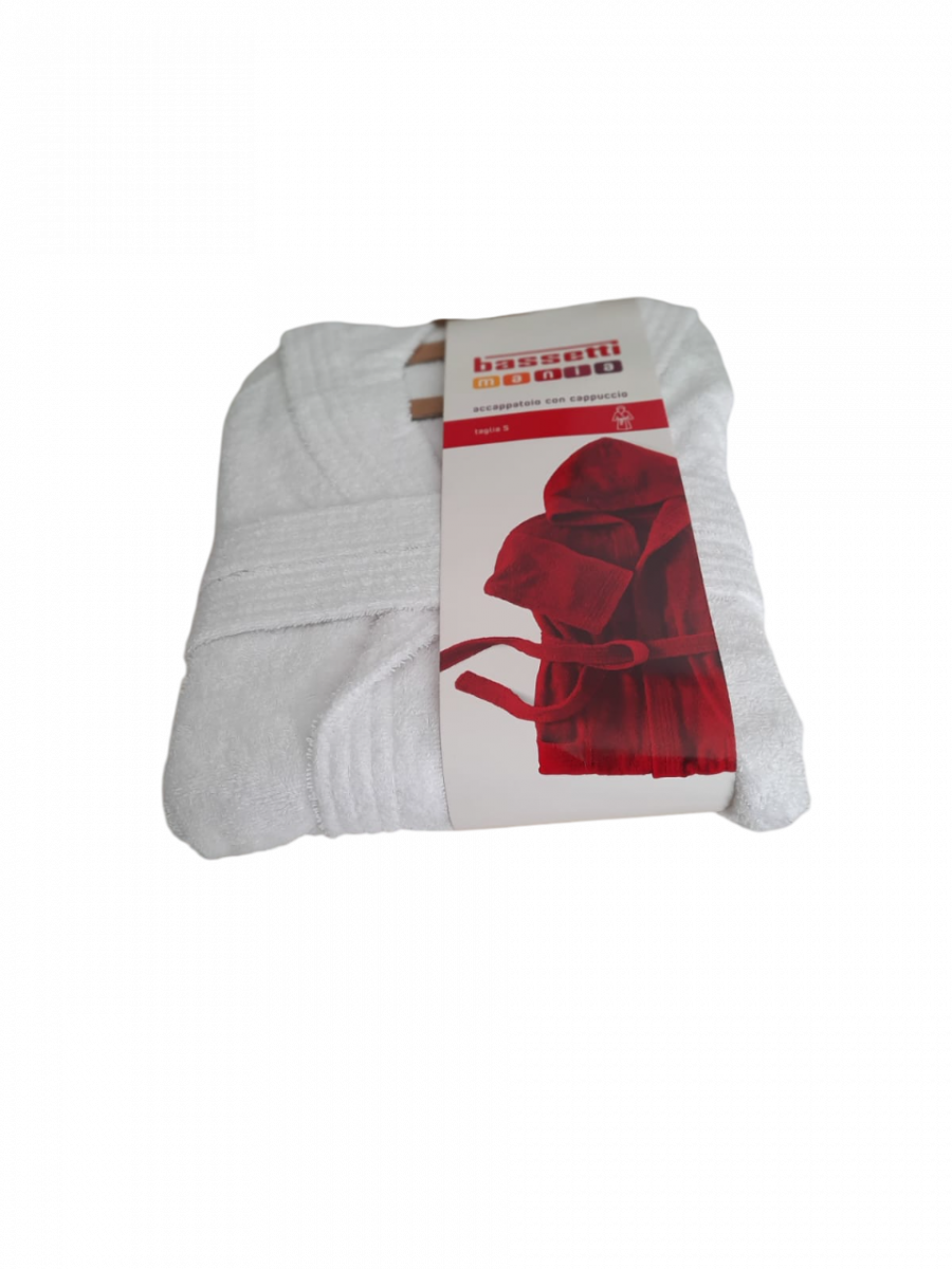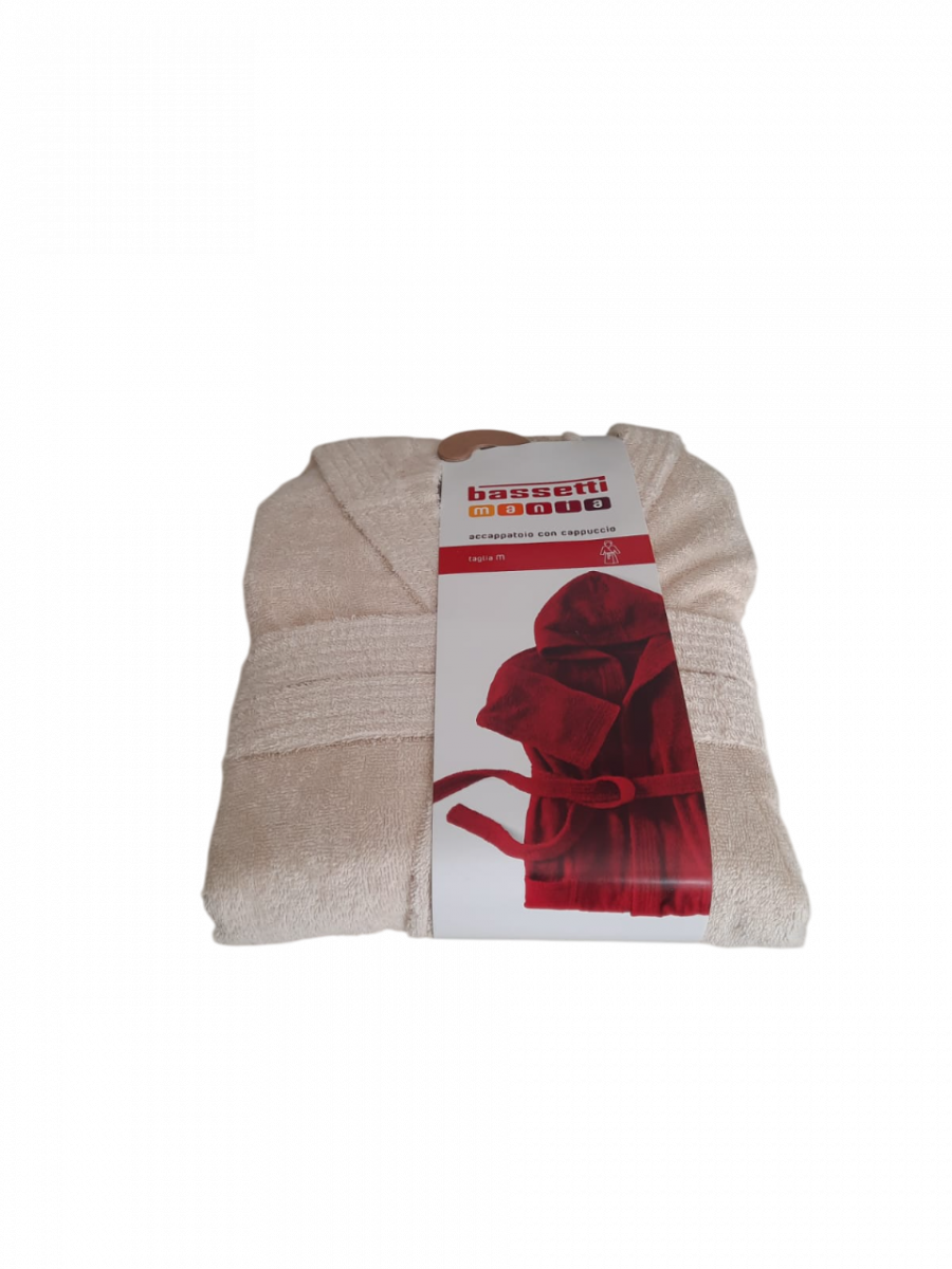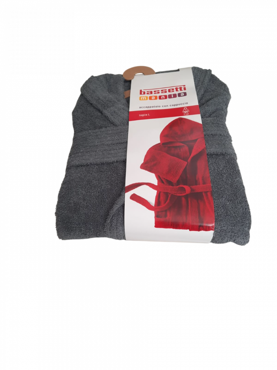 Articolo: ACCAPPATOIO SPUGNA CON CAPPUCCIO BASSETTI MANIA TINTA UNITA DA 360 GR./MQ