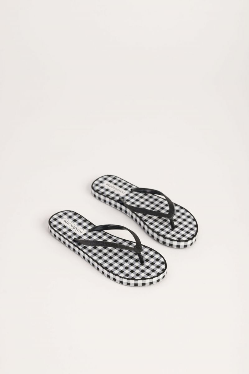 Mare sole voglia di estate. Tutto questo e' ritrovabile in questo infradito in gomma di Noi Di Notte in fantasia vichy .Infradito in gomma con pianta in fantasia disegno vichy. Istruzioni di lavaggio alla sezione foto e al capo. Prodotto made in P.R.C. Confezione busta in plastica con supporto in cartone.