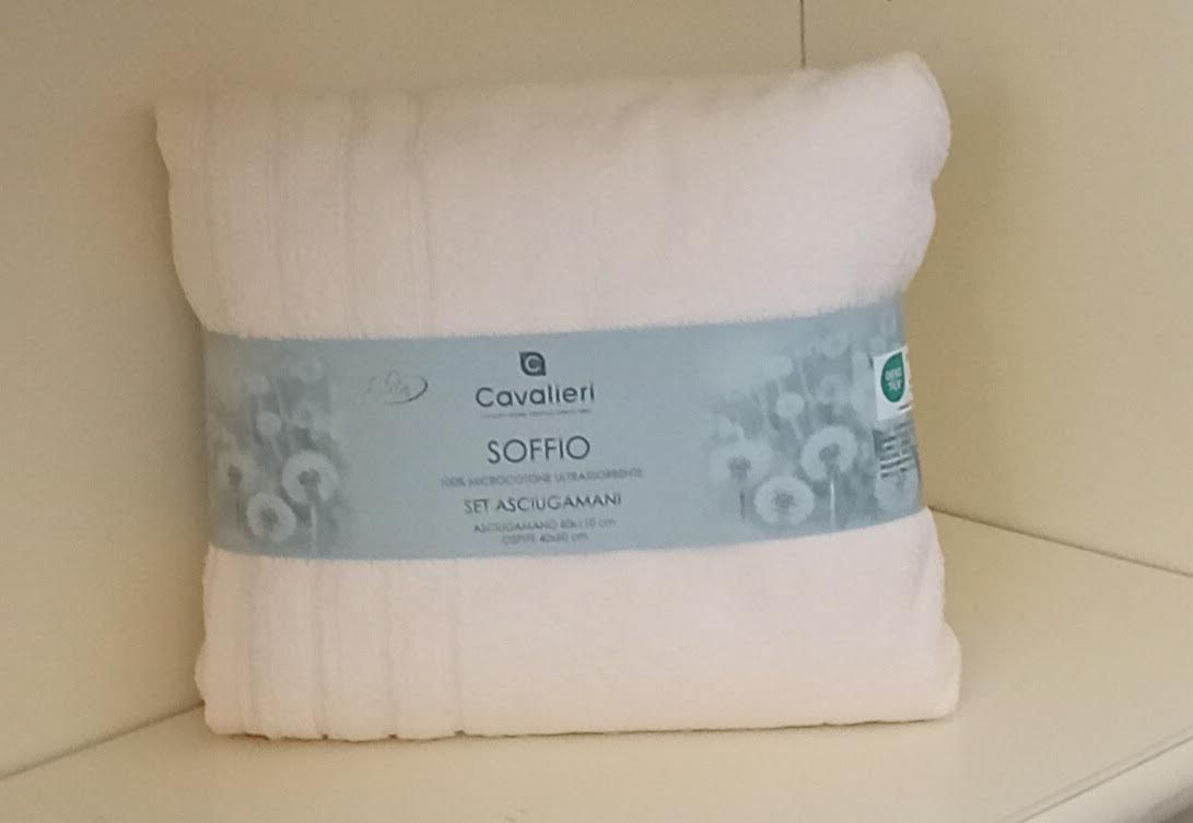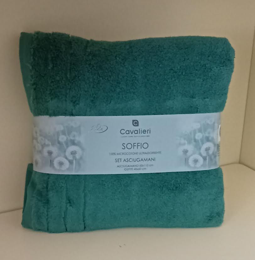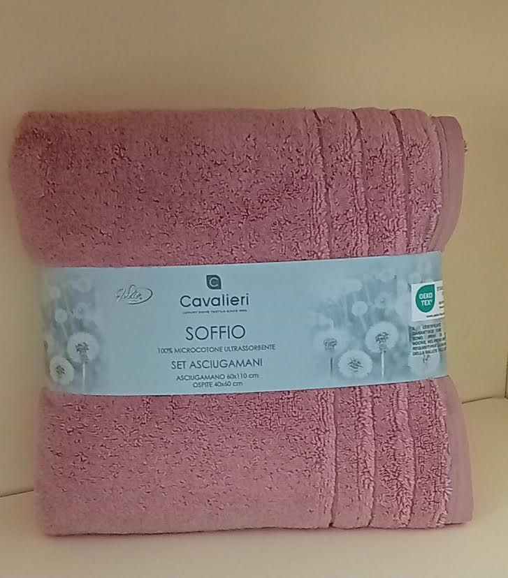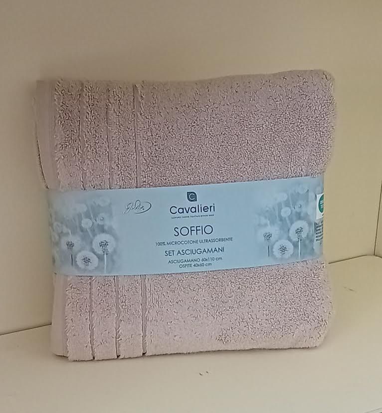 Quando il cotone viene tessuto nella forma di spugna ,esso realizza una delle sue migliori performance. Utilizzato in questa fattispece per realizzare asciugamani ,teli e accappatoi esso ci permette di godere di capi morbidi e avvolgenti capaci di donare piacevolissime sensazioni al corpo. E' il caso di questa meravigliosa coppia SOFFIO di Cavalieri. Lasciatevi avvolgere dal suo morbido abbraccio, dalla sua carezza tenera.La coppia e' composta da un asciugamano cm. 60x110 e un ospite cm. 40x60.Il tutto e' realizzato in 100% Soffice Microcotone massima assorbenza gr. 350 mq. La coppia e' in tinta unita. Tessuto 100% cotone. Prodotto made in Turkey. Istruzioni di lavaggio al capo. Confezione busta in plastica.