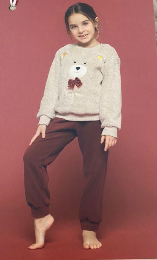 SIMPATICISSIMO PIGIAMA DA BAMBINA DI NOI DI NOTTE. UN DOLCE VISO DI ORSACCHIOTTO APPLICATO SUL DAVANTI E UN LEZIOSO FIOCCHETTO ROSSO LO RENDONO IDEALE ANCHE PER L'UTILIZZO HOMEWEAR. IL PIGIAMA HA LA MAGLIA IN CORALFLEECE MODELLO GIROGOLA E POLSINI. IL PANTALONE E' IN MICROPILE CON POLSINI. COMPOSIZIONE 100% POLIESTERE. PRODOTTO MADE IN CHINA. CONFEZIONE SCATOLA IN CARTONE.