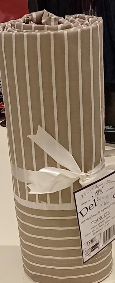 Di impronta decisamente moderna e molto minimal questo bel completo lenzuola misura a una piazza e mezza di Home Sweet Home, un complemento di arredo molto interessante per la camera da letto. Righe parallele su fondi dal colore attualissimo. Il capo e' realizzato in puro cotone 100%, stampato. Il completo e' costituito da : un lenzuolo per sopra di cm. 180x280 , un lenzuolo per sotto con angoli di cm. 120x200+24 , due federe cm. 52x82. Tessuto : 100% cotone. Confezione priva di imballi e con nastrino decor. Prodotto importato e distribuito da Franzese Francesco srl Pesaro. Prodotto made in Pakistan.