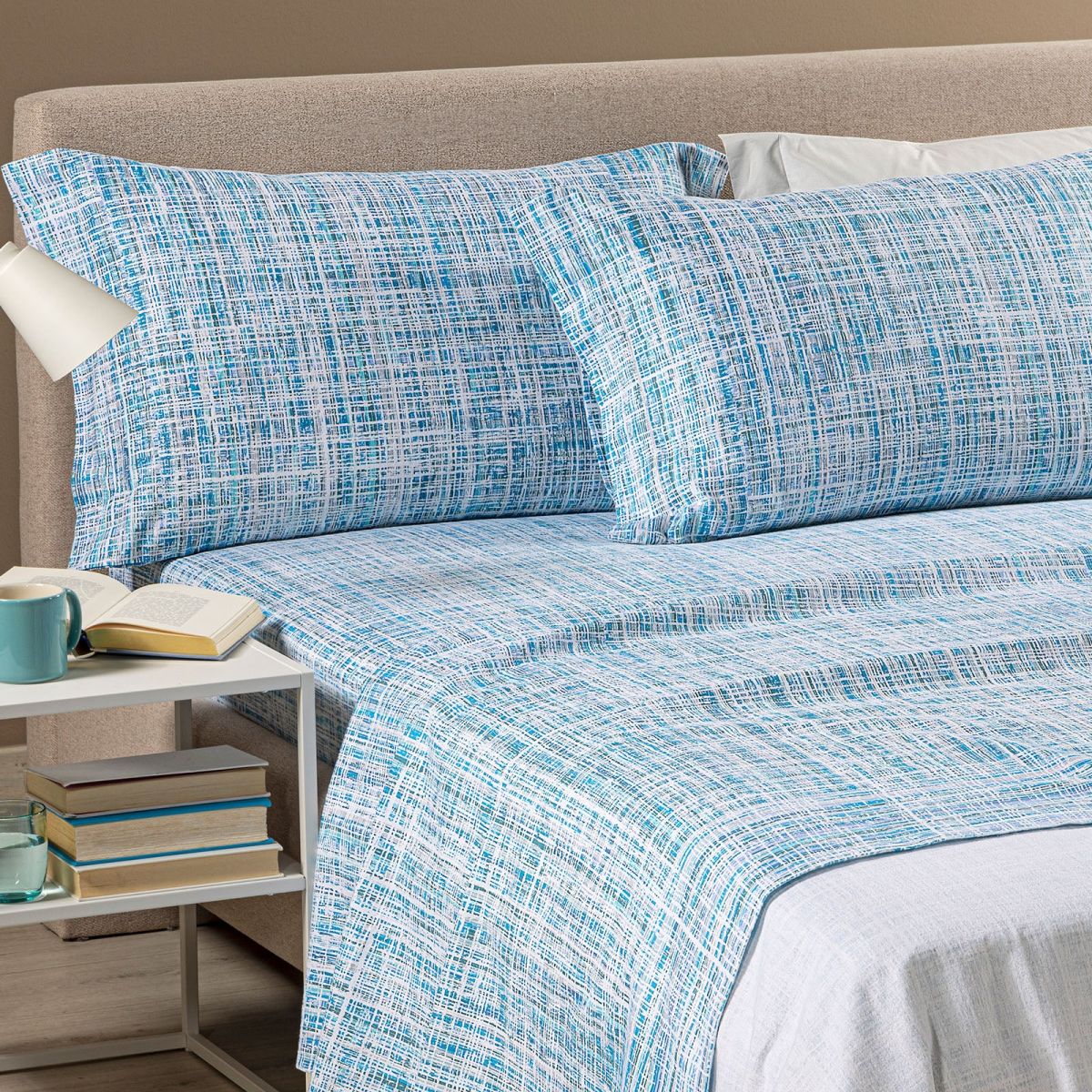 Lenzuolo per sopra cm. 240x280. Lenzuolo per sotto con angoli cm. 180x200, due federe a due volant cm. 50x80.