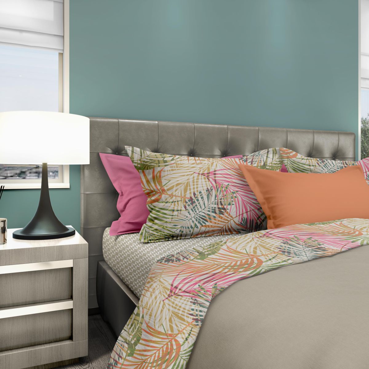 COMPLETO LETTO MATRIMONIALE JUNGLR FEVER DA LE VIE DEL COTONE. IL COMPLETO SI COMPONE DI UN LENZUOLO PER SOPRA DI cm.260X280. UN LENZUOLO PER SOTTO CON ANGOLI DA cm. 180X200X28. DUE FEDERE DA cm.52X82. IL COMPLETO LETTO HA A TESTA LA BALZA REVERSIBILE IN MODO DA POTER ESSERE UTILIZZATO ANCHE SENZA IL COPRILETTO. IL LENZUOLO E' IN PURO COTONE. PRODOTTO MADE IN PAKISTAN. CONFEZIONE BUSTA IN TESSUTO CON ASOLE E BOTTONI.
