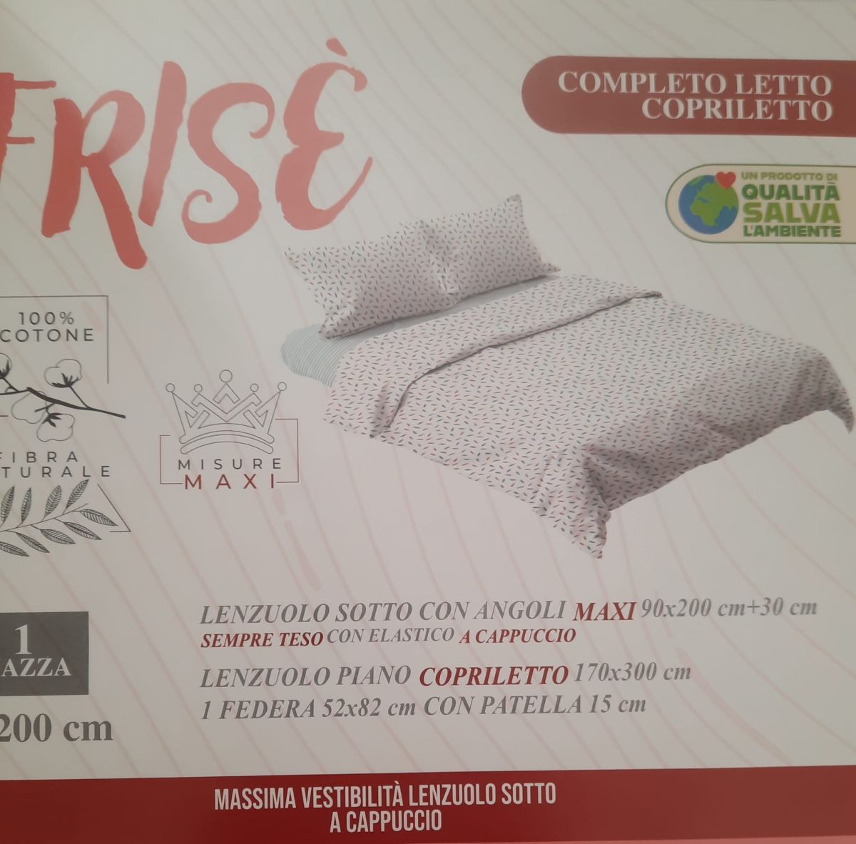 S&G Home by Centrotex Cisano sul Neva. Frise completo lenzuolo copriletto a una piazza in puro cotone.