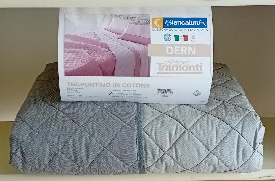 Elegante Trapuntino a una piazza della collezione TRAMONTI di BIANCALUNA.Un raffinato disegno animalier in tono su tono lo rende un fascinoso capo di arredamento.Il trapuntino DERN e' realizzato in puro cotone e poliestere con trapuntatura a rombi cm. 10x10. Tessuto : esterno 100% cotone, Imbottitura 100% Poliestere siliconato 100gr.mq. Misura a una piazza cm. 170x260. Istruzioni di lavaggio al capo. Confezione busta in plastica con zip. Prodotto made in ITALY.