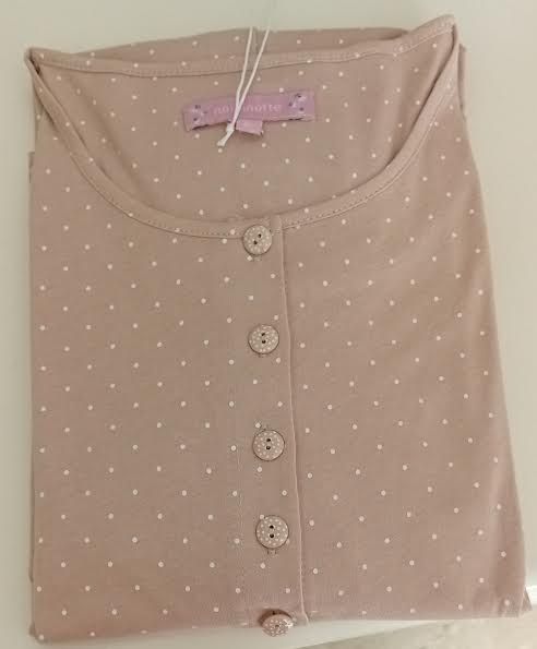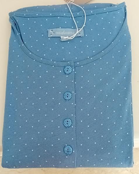 Noi di Notte collezione P.e. 2024. Camicia da notte clasica in cotone con manica lunga. La camicia e' completamente abbottonata sul davanti con abbottonatura visibile nella parte superiore e poi nascosta per il rimanente. Molto semplice e fine nella sua fantasia micropois. Il modello con abbottonatura la rende ideale anche come capo premaman. Una piccola applicazione di merlettino gli dona un tocco di leziosita' e raffinatezza. Tessuto 100% cotone. Confezione: scatola in cartone. Prodotto made in China. Lavare in lavatrice max 30°centrifuga breve; non usare candeggina; stirare a 150°max; non lavare a secco; si puo' usare asciugabiancheria a temperatura ridotta. Si consiglia un primo lavaggio con acqua fredda e aceto di vino bianco unitamente a una centrifuga molto leggera. Questo capo e' realizzato nel rispetto dei parametri ecotossicologici elencati nel Reg EU1907/06 'REACH' e succ. mod. Per le taglie diamo le seguenti indicazioni in centimetri : Torace XS82 S86 M90 L94 XL98 Vita XS64 S70 M74 L78 XL82 Bacino XS90 S94 M98 L102 XL106.