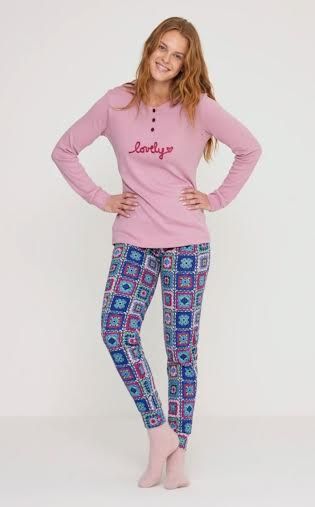 Morbidi e carezzevoli tessuti caratterizzano i pigiami delle collezioni Noi Di Notte. Il posto giusto dove infilarsi nelle fredde giornate invernali magari passate in casa in modalita' free time. Modello serafino per questo pigiama FA8810 con casacca in tinta unita e piccola scritta sul davanti; il pantalone e' invece in un elegante e leziosa fantasia che ricorda le lavorazioni a uncinetto . La casacca ha i polsini, il pantalone anche. Tessuto 80% cotone 20% poliestere. Prodotto made in Cina. Noi Di Notte. Istruzioni di lavaggio al capo. Confezione scatola in cartone. Per le taglie diamo le seguenti approssimative indicazioni in centimetri : Torace Xs 82 S 86 M 90 L 94 XL 98 Vita Xs 64 S70 M 74 L 78 Xl 82 Bacino Xs 90 S 94 M 98 L 102 Xl 106