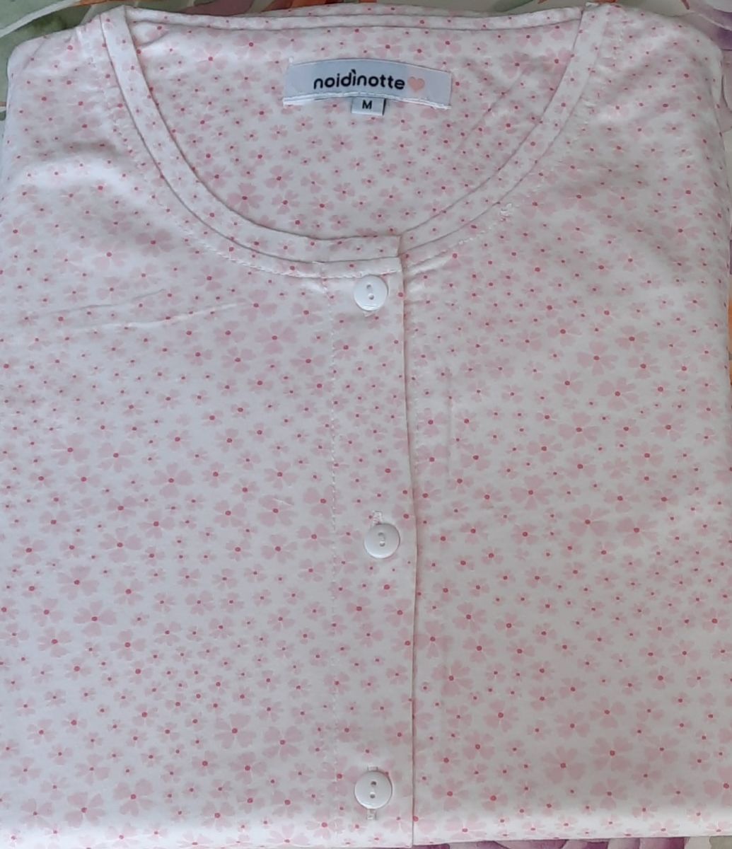 Una fantasia molto minimal di piccole margheritine rosa o celesti su fondo bianco caratterizza questo pigiama da donna in cotone della collezione Primavera Estate 2025 di Noi Di Notte. Il pigiama ha il pantalone lungo senza polsino e la casacca con maniche lunghe. La casacca e' tutta abbottonata sul davanti. Il fine manica, il fine pantalone e la parte terminale della casacca sono impreziositi da una elegante e leziosa rouches.Tessuto cotone 100%. Istruzioni di lavaggio al capo. Confezione busta in plastica. Prodotto made in Cina.