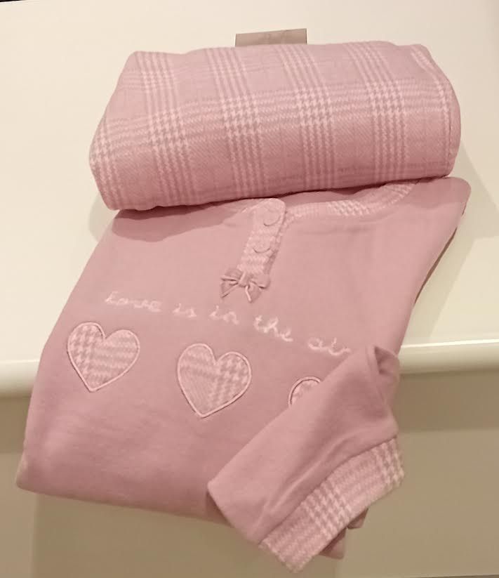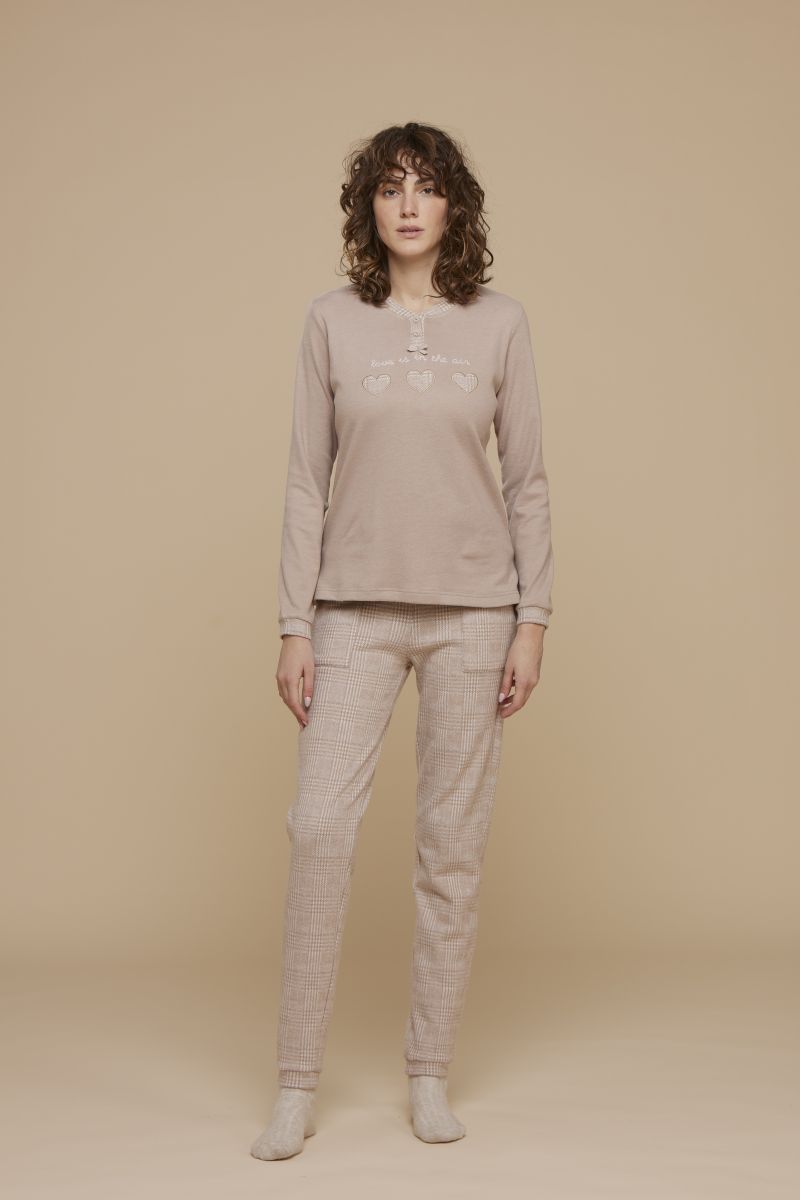 PIGIAMA DONNA NOI DI NOTTE IN PUNTO MILANO. IL PIGIAMA, MODELLO SERAFINO CON DUE BOTTONCINI, HA POLSINI A MANICHE E AL PANTALONE. LA CASACCA, CON POLSINI, E' IN TINTA UNITA CON PROFILI QUADRETTATI AI POLSINI E AL COLLO E UNA SIMPATCA APPLICAZIONE DI CUORICINI SUL DAVANTI CON SCRITTA 'LOVE IS IN THE AIR '. IL PANTALONE E' IN FANTASIA A QUADRI E HA I POLSINI E DUE COMODISSIME TASCHE. IDEALE OLTRE CHE PER DORMIRE, ANCHE COME CAPO HOMEWEAR. PRODOTTO MADE IN CHINA. COMPOSIZIONE 80% COTONE 20% POLIESTERE. CONFEZIONE SCATOLA IN CARTONE. QUESTO CAPO E' REALIZZATO NEL RISPETTO DEI PARAMETRI ECOTOSSICOLOGICI ELENCATI NEL Reg. EU 1907/06 'REACH' E SUCC.MOD. ISTRUZIONI DI LAVAGGIO SU ETICHETTA INTERNA.