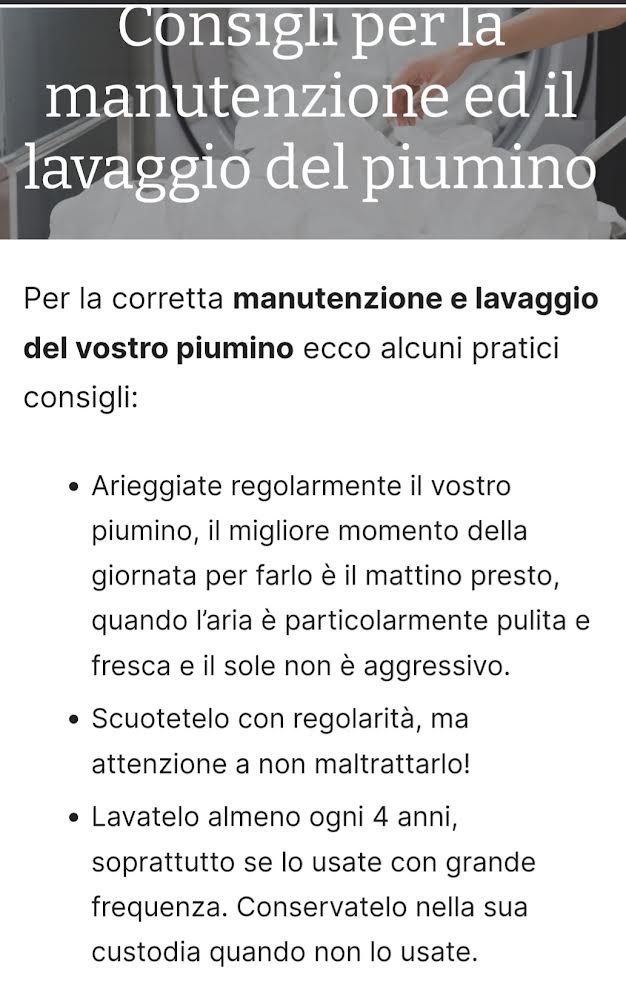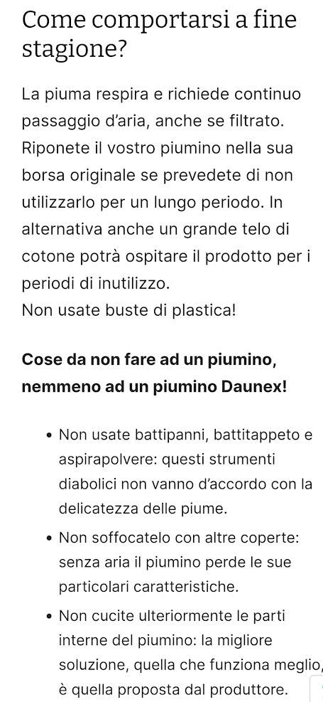 IMBOTTITURA : 100% piumino bianco vergine ungheria.TESSUTO 100% cotone ca.110gr/m2 CONFEZIONAMENTO : a cassette con fettucce distanziatrici interne. PAKING : borsa in cotone COLORE : bianco. POTERE DI RIEMPIMENTO : 720 buono.GRADO DI CALORE PER QUESTO PIUMINO : °°°°. DAUNEX garantisce che i TESSUTI utilizzati , sono stati testati con successo in accordo allo STANDARD 100 by OEKO-TEX* per sostanze chimiche pericolose per la salute.MISURA : una piazza e mezza 200x200.Articolo prodotto in Italia.