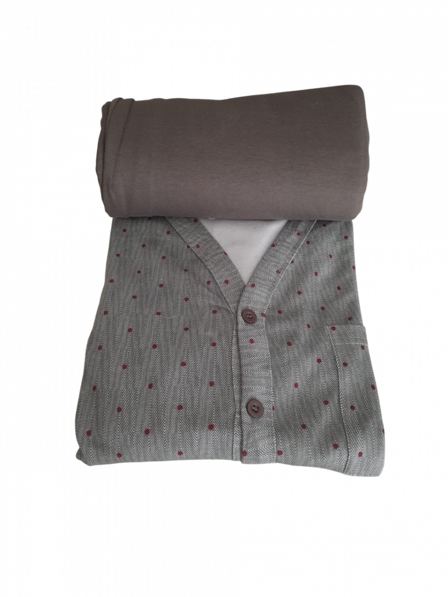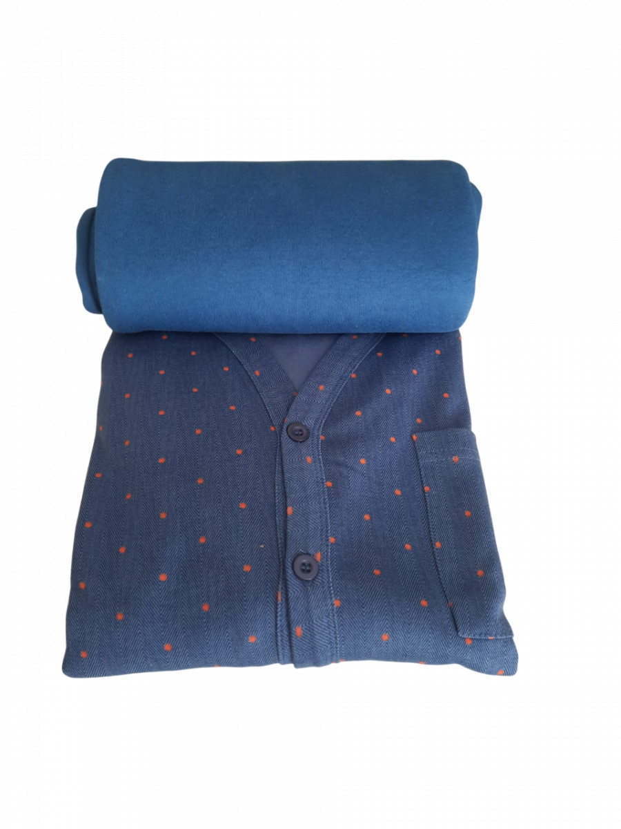 Pigiama da uomo in caldo cotone manica lunga e pantalone lungo con giacca interamente abbottonata e scollo a V.