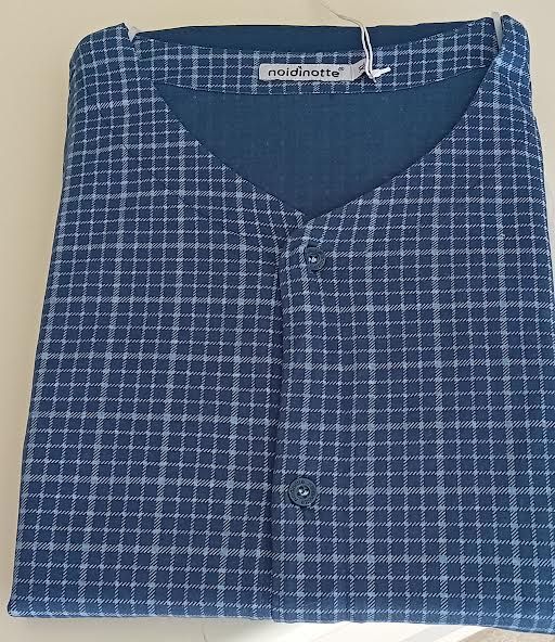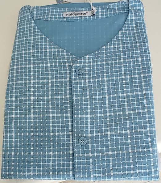 Pigiama da uomo in puro cotone di Noi Di Notte. Il pigiama ha la casacca a quadrettini con abbottonatura sul davanti, collo a punta e maniche corte. Il pantalone e' lungo senza polsini e in tinta unita. Il tutto molto sobrio e raffinato. Un cult dell'homewear da uomo. Tessuto: 100% cotone. Confezione: scatola in cartone. Prodotto made in China. Istruzioni di lavaggio al capo. Si consiglia un primo lavaggio con acqua fredda e aceto di vino bianco separatamente da altri capi unitamente a una centrifuga leggera. Questo capo e' realizzato nel rispetto dei parametri ecotossicologici elencati nel Reg EU1907/06 'REACH' e succ. mod.