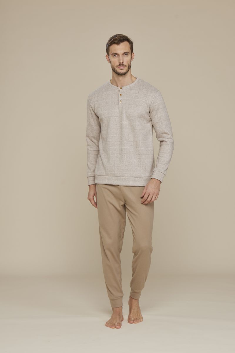 PIGIAMA UOMO IN MORBIDO PUNTO MILANO DI NOI DI NOTTE. IL PIGIAMA HA IL PANTALONE E LA MAGLIA CON POLSINI. IL PANTALONE E' IN TINTA UNITA CON POLSINI. LA CASACCA E' IN FANTASIA QUADRI TONO SU TONO IN MODELLO SERAFINO A TRE BOTTONCINI.UN CAPO CHE UNISCE IN SE TUTTA LA RAFFINATEZZA DI UN CARATTERISTICO DISEGNO MASCHILE E LA PIACEVOLE MORBIDEZZA DEL TESSUTO PUNTO MILANO.CAPO REALIZZATO NEL RISPETTO DEI PARAMETRI ECOTOSSICOLOGICI ELENCATI NEL Reg EU1907/06 'REACH' E SUCC.MOD. PRODOTTO MADE IN CHINA. COMPOSIZIONE 80%COTONE 20%POLIESTERE. CONFEZIONE SCATOLA IN CARTONE.